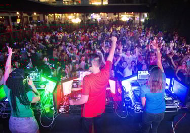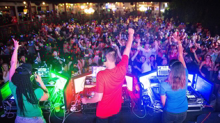 Cada canal cuenta con un DJ diferente y un estilo musical propio, permitiendo que convivan varias atmósferas en un mismo evento.